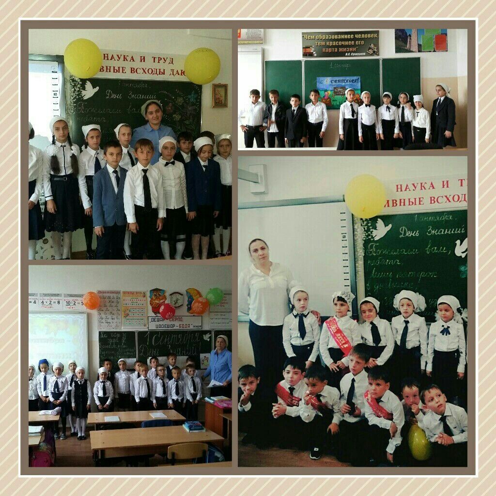 В 1 – 11-х классах проведены классные часы и «Уроки Мира», посвященные жизни и деятельности Первого Президента ЧР, Героя России А.-Х. Кадырова. Во всех кабинетах были оформлены доски, использовалась наглядность. Интересно и увлекательно прошли уроки в начальной школе. С активным участием детей провели первый урок классный руководитель 1 класса Лечиева Милина Адамовна. Интересно прошли классные часы в во 2-м классе (кл.рук.Исраилова З.Л.) в 3-м классе (кл.рук.Исмаилова Р.У.), в 4-м классе (кл.рук. Магамадова Э.У.). Классные руководители 1 – 11-х классов провели тематические классные часы, посвященные Дню знаний. Также прошли беседы по безопасности, на которых особое внимание уделялось вопросам безопасного поведения школьников в различных ситуациях (профилактика дорожно–транспортного травматизма, пожаробезопасность, электробезопасность).