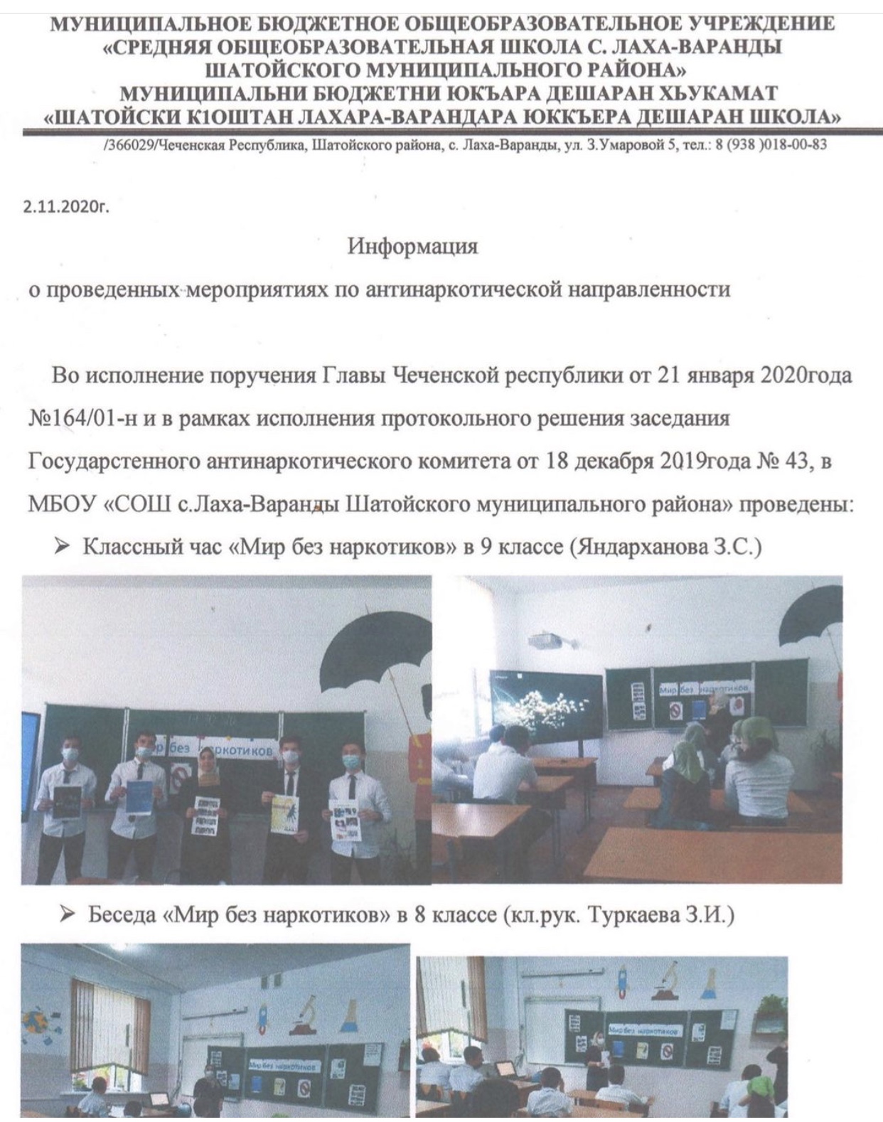 Информация о проведенных мероприятиях в МБОУ «СОШ с.Лаха-Варанды» по антинаркотической направленности.