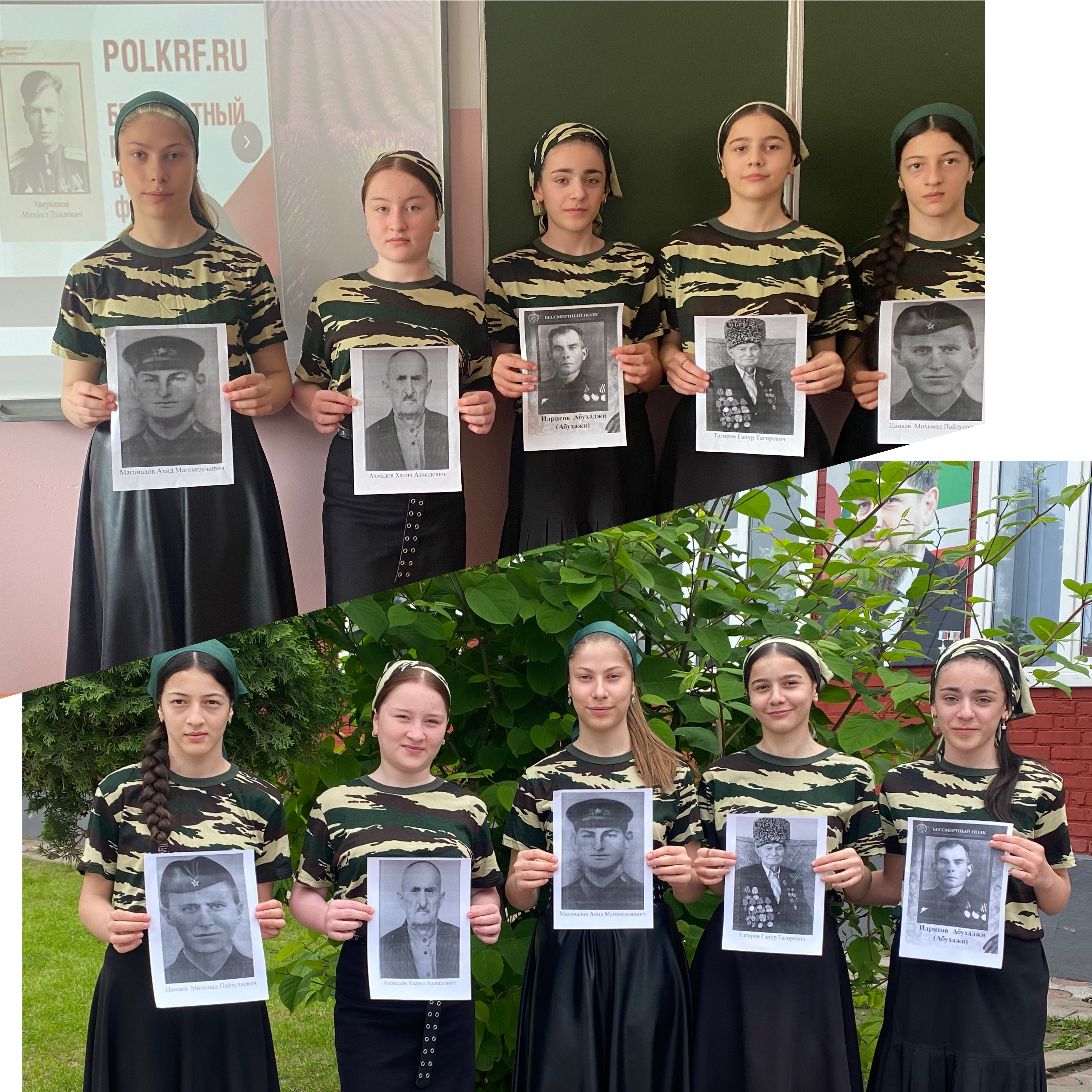10.05.2023В рамках реализации федерального проекта «Патриотическое воспитание», нацпроекта «Образование», в целях воспитания обучающихся в духе патриотизма 9 мая в МБОУ «СОШ им.профессора Ш.Джамбекова с.Лаха-Варанды» педагог - библиотекарь Туркаева З.И. провела Акцию «Бессмертный полк».