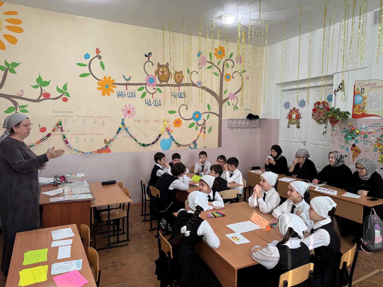 24.12.202523 декабря в рамках увлекательной Недели математики Исраилова З.Л. в 3 классе МБОУ «СОШ им.профессора Ш.Джамбекова с.Лаха-Варанды» провела внеклассное занятие «Час веселой математики». Мероприятие проведено в рамках реализации национального проекта «Молодёжь и дети» и федерального проекта «Всё лучшее детям». Цель данного мероприятия: развитие интереса к математике через нестандартные задачи, головоломки и игры, формирования положительной эмоциональной атмосферы вокруг предмета, чтобы наши дети увидели: математика – это не сложные столбики примеров, а мир удивительных открытий, игр и фокусов, где можно творить, играть и побеждать. В программе «Часа веселой математики» были настоящие открытия: загадки, лабиринтыи веселые задачи, которые решаются с помощью внимания и находчивости. Занятие прошло в форме конкурса. Две команды «Деление» и «Умножение» работали очень активно. Конкурс начался с соревнования между капитанами команд. Далее конкурсы: «Веселая разминка», «Математический словарь», «Ребусы», «Шифровальщики», «Город геометрических фигур», «Числа в пословицах и поговорках» и «Задачи - шутки». Победителем стала команда «Умножение». «Для детей начальной школы главный способ познания мира – игра. Наше занятие – это мостик между игрой и наукой, - сказала Зайбула Лечиевна. – Мы хотим показать детям, что математика – это не только формулы в учебнике, и, чтобы первые встречи с математикой оставили у ребят только яркие, позитивные впечатления, желание исследовать и узнавать новое».