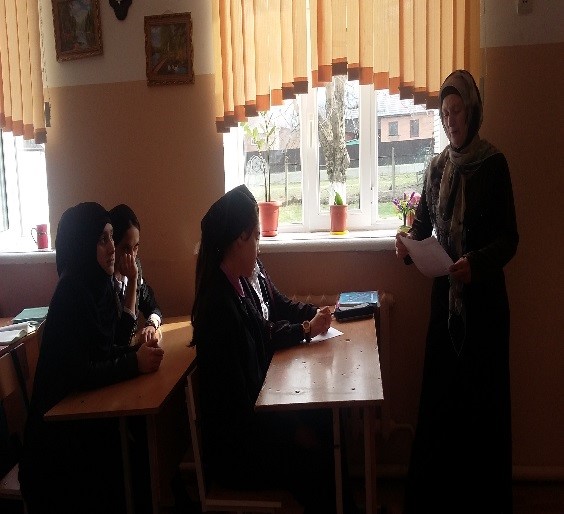 Провела беседу Магамадова Х.С. Вели беседу о проведении референдума 23 марта 2003 г. по конституции и законам о выборах президента и парламента Чеченской Республики, с целью которой являлось воспитание любви к родному краю и родной стране, формирование у детей чувство собственного достоинства, положительные качества личности.